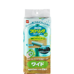 This roll cleaner is perfect for cleaning not only wood flooring but also tatami mats, vinyl flooring, and screens. It uses cushioned base material and static electricity to pick up everything from small pieces of detritus to large food crumbs and other solids. It comes in three versions, a long version measuring 915mm, a short version measuring 300mm, and a wide tape version.* Click here for information about the wide type.