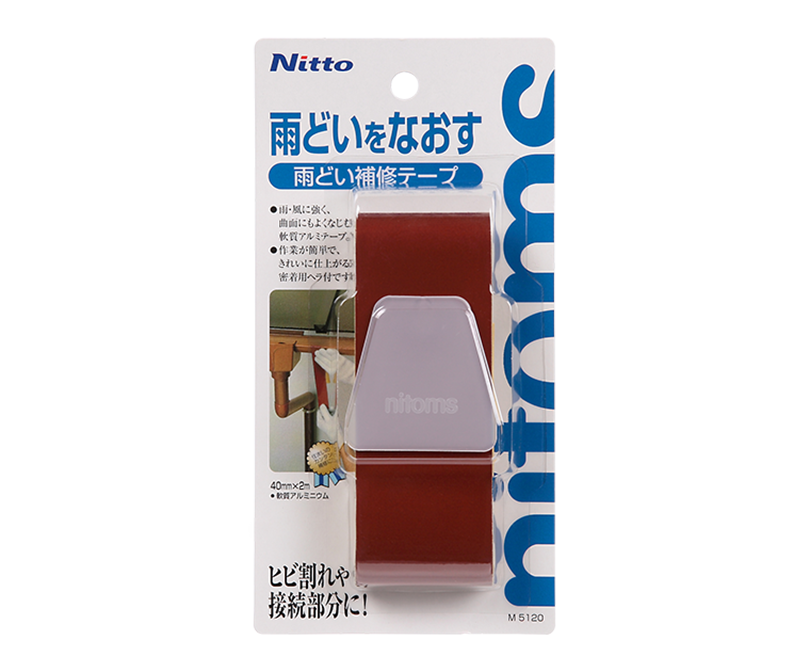 This tape is made with soft aluminum with a baked finish, so it offers superb weather resistance. It fits closely to uneven and curved surfaces such as rain gutter cracks and joints.