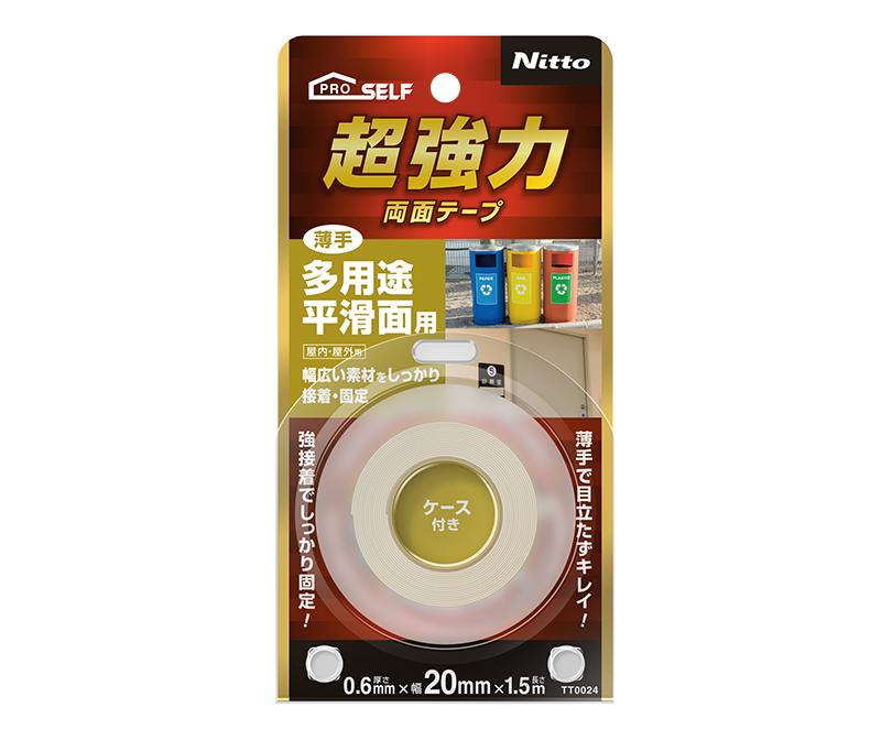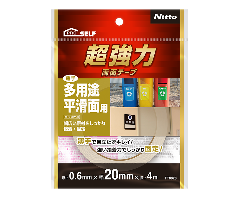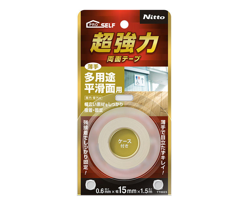 広い素材の接着や固定に最適です。薄手タイプなので目立ちません。